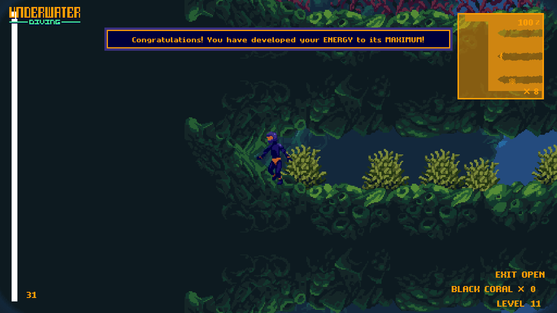 Collect energy bushes, which in addition to filling your energy gauge will increase its maximum. But above all find the precious red corals, the only way to increase the level of the diver and therefore all its characteristics.